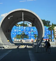 The Gotthard Base Tunnel comprises two 57-kilometer single-track tubes. They are interconnected every 325 meters with cross passages. Including all of the connecting and access tunnels and shafts, the entire tunnel system is more than 150 kilometers in length.